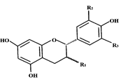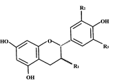 | 21. | Prodelphinidin (PD) | ![]() R1 = OH, R2 = OH, R3 = OH |