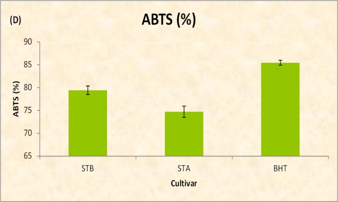 The present work, the extract of STB cultivar evidenced remarkable bioactivity compared to that exhibited by STA cultivar. STB was thus selected for investigation of its phytochemicals.