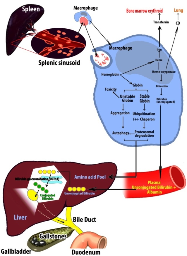 Fig. 3: Mechanism of the extravascular hemolysis and gallstones development