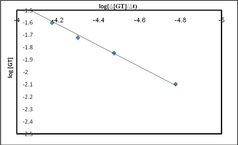 Fig. 3: Calibration plot of logarithm rate against logarithm concentration of GT for initial-slope method
