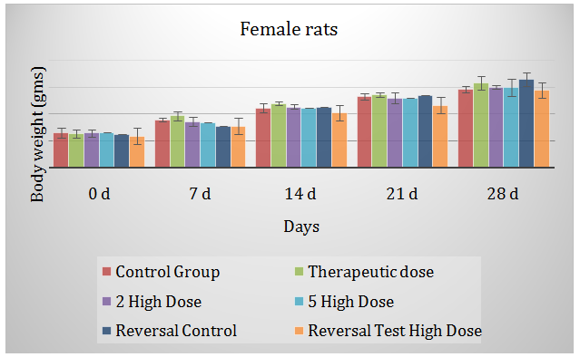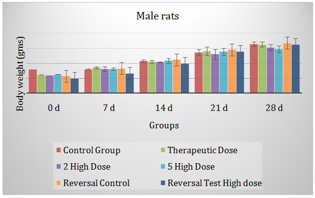 The last 2 Groups (V & VI) were included in the study as per OECD guidelines to evaluate the reversal in the various parameters that take place consequent to withdrawal of drug dosing. The parameters of the Reversal Control Group (Group V) were compared with the Control Group (Group I) and those of Reversal Treatment Group (Group VI) with the Drug Treatment Group (Group IV).