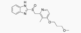 Rabeprazole sodium is a potent proton pump inhibitor that suppresses gastric acid secretion. It is used in the treatment of gastrooesophagial reflux disorder (GERD) and duodenal ulcer [3]. Chemically Rabeprazole is 2-({[4-(3-methoxypropoxy)-3-methylpyridin-2-yl] methane} sulfinyl)-1H-1,3 benzodiazole.