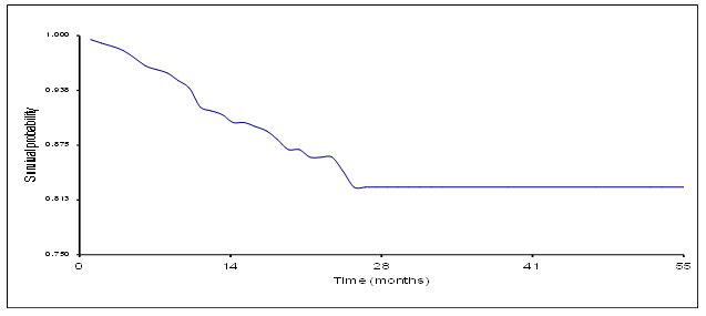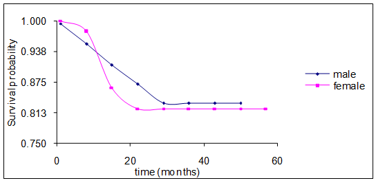 Fig. 3: The Survival Function (Kaplan–Meier model) according to the gender