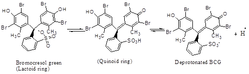 Scheme 1: Proposed reaction mechanism for the ion pair complex formation between DNP and BCG