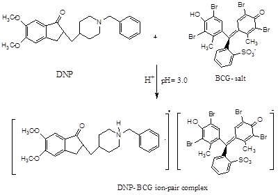 Keywords: Donepezil hydrochloride, Spectrophotometry, Ion-pair complex, Sulphonphthalein dyes, Pharmaceutical formulations.