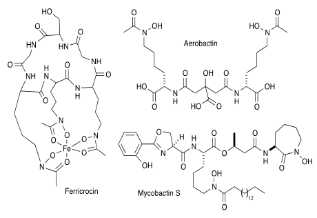 Bacteria have evolved to produce siderophores with a variety of structural groups such as catecholate, phenolate, hydroxamate, carboxylate, and mixtures of the above functional groups (fig. 1).