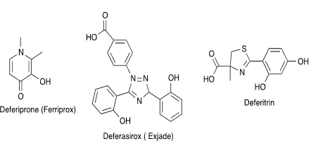 Desferrioxamine B which is a linear trihydroxamate is used for in vitro and in vivo treatment of Plasmodium falciparum. Studies indicate that its mechanism of action is via intracellular iron depletion of the parasite [21]. Desferrioxamine B conjugated with nalidixic acid displayed even more potent activity against multidrug-resistant P. falciparum where iron-catalyzed oxidative DNA damage occurred [22].