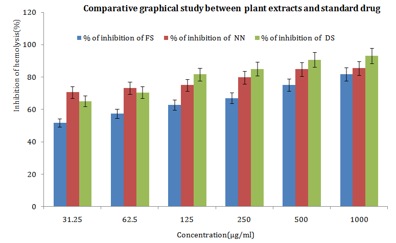 Fig. 1: It shows the inhibition of hemolysis (%) of Flemingia stricta, Nymphaea nouchali and Diclofenac sodium
