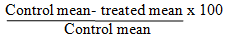 %Inhibition = 100-(Control mean/Treated mean x 100)
