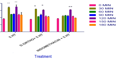 Dr. Ortho significantly reduced the Carrageenan (fig. 4), Histamine (fig. 5), 5-HT (fig. 6), Bradykinin (Fig.7) induced paw edema respectively.