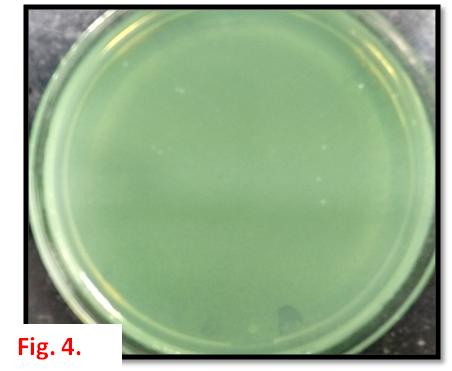 Fig. 4: Control plate containing CCCP+MHA medium. The M2271/13 isolate has been used for negative control and screened for any activity of CCCP against P aeruginosa growth. Detected no activity. Which indicates CCCP act as efflux pump inhibitor only and has no bactericidal activity.