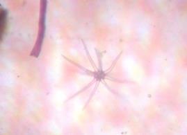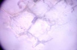 Fig. 17: Quantitative Microscopy of leaf, (a): Epidermal cells with covering trichomes, (b,c): Epidermal cells with anisocytic/cruciferous stomata, (d): Epidermal cells with multicellular branched covering trichomes(stellate trichomes). (e): Epidermal cells with covering trichomes, (f): Epidermal cells with covering circartrix