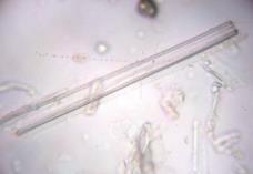 Microscopial characters of mid rib of the leaf are shown in fig. 1(a), fig.2 (a, b) and fig. 3 (a, b, c) at magnifications of 5 x×5 x, 5 x×10 x and 5 x×45 x respectively. Epidermis is single layer, composed of straight walled rectangular cells. Below the epidermis, 6-7 layers of collenchymatous cell are present. Collenchyma is followed by thin layer of parenchymatous cell of about 4-5 layers. 3-4 layers of collenchymatos cells are present above the lower epidermis. Vascular bundle is arc shaped. It consists of lignified xylem and non lignified phloem. Here, vascular bundle is closed due to absence of cambium. Vascular bundle is collateral closed (xylem and phloem are present on the same radius in the same vascular bundle). Xylem is endarch, where protoxylem lies towards centre and metaxylem towards periphery. Xylem is surrounded by phloem. Phloem contains clusture of calcium oxalate crystals. Phloem tissue is surrounded by pericycle fibre. It consists of multilayered sclerenchymatous cell which forms ring or patches just above the vascular bundle. These are highly lignified. The vascular bundle is completely surrounded by 3-4 layers above and 6-7 layers below the parenchymatous cell. Lower epidermis consists of single layer of polygonal parenchymatous cell and it contains covering trichomes on it surface.