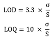 Where 𝜎 = the standard deviation of the response, S = the slope of the calibration curve.