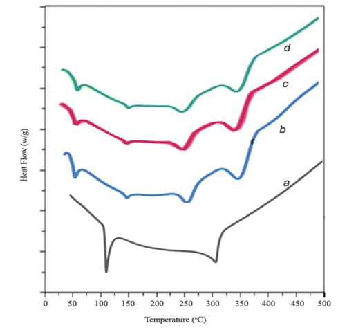 Differential scanning calorimetric (DSC) curves were recorded on a TA instrument (Model: ST A, Q600 USA). The sample weighed was between 10 and 12 mg. The samples were heated from 50 to 500 oC at a heating rate of 10 oC/min in nitrogen atmosphere (flow rate of 100 µl/min) [24, 25].