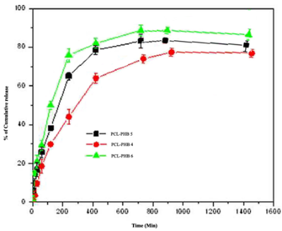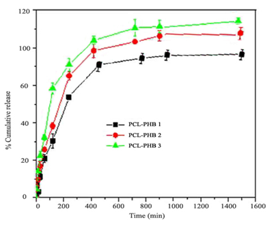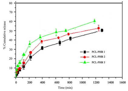 Polyhydroxy butyrate (PHB) is a polyhydroxy alkanoate (PHA), a polymer belonging to the polyesters class that are of interest as bio-derived and biodegradable polymer. Past few decades Polyhydroxy butyrate (PHB) and its copolymer hydroxy valerate (PHBV) are the most widely used Polyhydroxy alkanoate polymers in drug release studies [14]. The advantage of using these polymers is that they are completely biodegradable, inexpensive, easily produced by the fermentation of a variety of bacteria and degrade during natural biological processes, making them important for the production of release systems for bioactive materials [15, 16].
