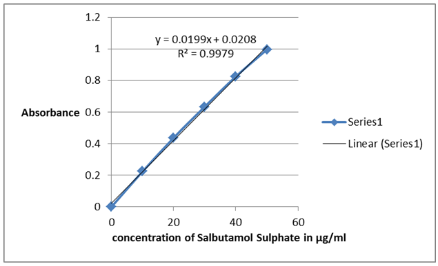 *y = bx+a where x is the concentration of Salbutamol Sulphate in μg/ml and y is the absorbance at the respective wavelength.