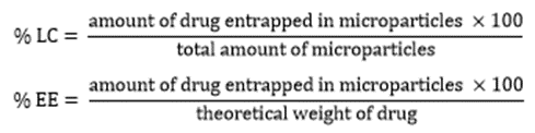 Determination of drug content, percentage loading capacity (% LC) and percentage entrapment efficiency (% EE) of prepared microparticles