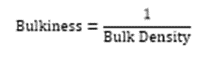 It is the reciprocal of bilk density and has importance in packaging of powder or particles. It is calculated as follows-