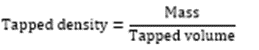 Proceed as described above for the determination of the bulk volume. Secure the cylinder in the holder. Carry out 100 taps on the same sample and read the tapped volume to the nearest graduated unit. It is calculated by
