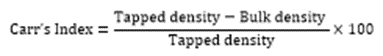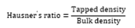 Carr’s index and Hausner’s ratio was calculated from following formula: