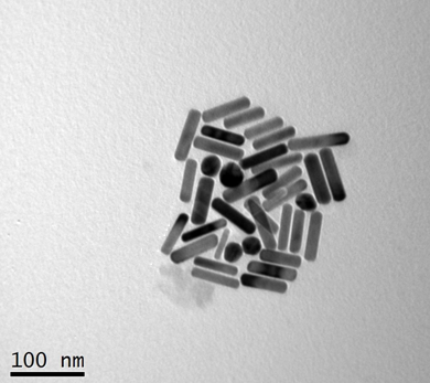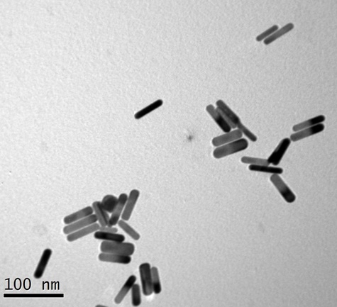 Fig.1:TEM image of gold NRs with plasmon band energies at 800 nm