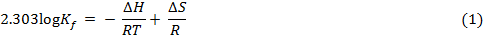 The formation constants Kf was also determined using the Rose-Drago method for UV-visible spectroscopy using equation 2 below as described previously [29].