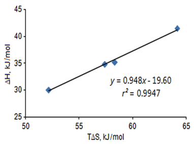 Conclusion: The stability of complexes increased with temperature suggesting endothermic nature of complexation reactions. The thermodynamic data showed that all the complexes formed were entropy stabilized and enthalpy destabilized. A good linear relationship between ∆H and T∆S values suggests existence of entropy–enthalpy compensation in the complexation of these four cations with glimepiride.