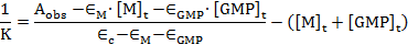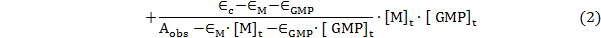 Where ∈c, ∈M and ∈GMP are the molar absorptivity of the complex, metal ion and GMP respectively; Aobs is the absorbance value for the mixture of standard mixtures containing [M]t and [GMP]t (concentration of metal ion and GMP respectively). The calculated values were in good agreement with those found by the conductometric method as shown in table 1. Further, the stability order of complexes Mg2+>Cu2+>Zn2+>Ca2+was also identical with that obtained by conductometry.
