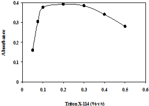 Results: The enriched analyte in the surfactant-rich phase was diluted with methanol and the cobalt content was determined by spectrophotometry at 549 nm. The optimum conditions (e. g. pH, reagent and surfactant concentrations, and temperature and centrifugation times) were evaluated and optimized. The proposed CPE method showed linear calibration within the range 10–300 ng/ml of Co(II) and the limit of detection of the method was 1.5 ng/ml with a pre concentration factor of 50. The relative standard deviation (RSD) was found to be 1.20% (N = 6). The interference effect of some cations and anions was also studied.