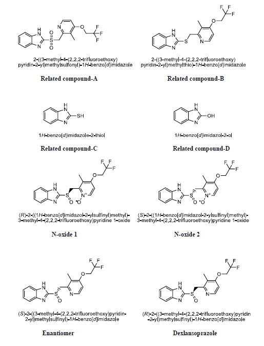 Fig. 1: Chemical structure of Dexlansoprazole and its impurities