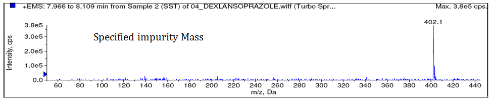 500 µg/ml of Dexlansoprazole spiked with 1 µg/ml of impurities and injected for specificity and system suitability purpose