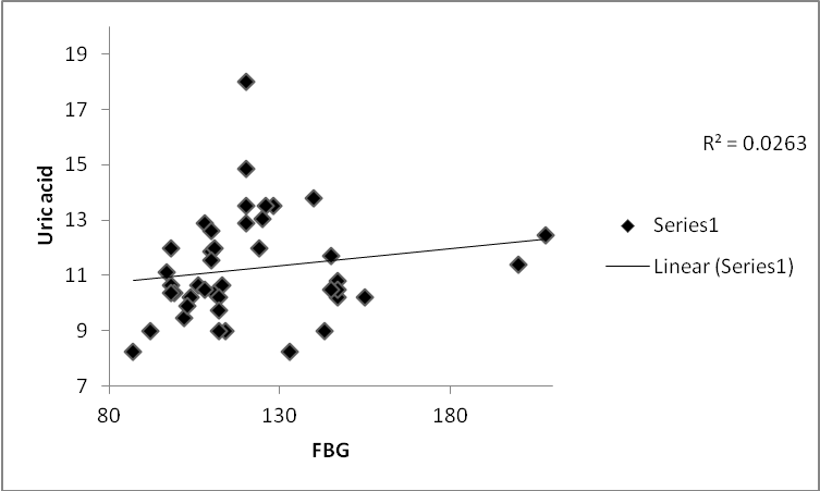 Fig. 3: Relationship between FBG and Uric acid level in the non-coffee consumers in the diabetic study population