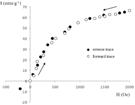 The decrease in the particle size to the nanometer scale is accompanied by the decrease in the magnetization all ZnMNPs. The sample ZnMNPs40 has the specific magnetization M = 75 emu∙g-1 in field H= 17 kOe (fig. 3). It is higher than magnetization of magnetite particles (FeFe2O4) with the same size [25]; i.e., the substitution of zinc ions for iron ions made it possible to increase the magnetization of the nanoparticles. By using the co-precipitation method at room temperature, it is easy to prepare ZnMNPs nanoparticles with an approximate size of 9 nm. The results showed that the crystallite and average particle size of the ZnMNPs were dependent on the concentration of zinc ions.