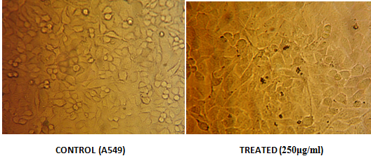 Fig. 3: Microscopic examination of morphological changes in A549 cells treated with methanolic extract of S. samarangense fruits