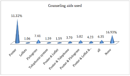 51.32 % and 7.41 % respondents showed that they use posters and pictograms for patient counselling respectively, while 16.93 % were not using any aid which was in significant as in fig.5. Further, use of more than one technique in combination was not significant compared to others [11]. It has also been shown that the combination of oral and written information is more effective in educating patient it allows the patient to refer to in case they forget any heard information. The use of videos, graphics and other tools could be used to support counselling.