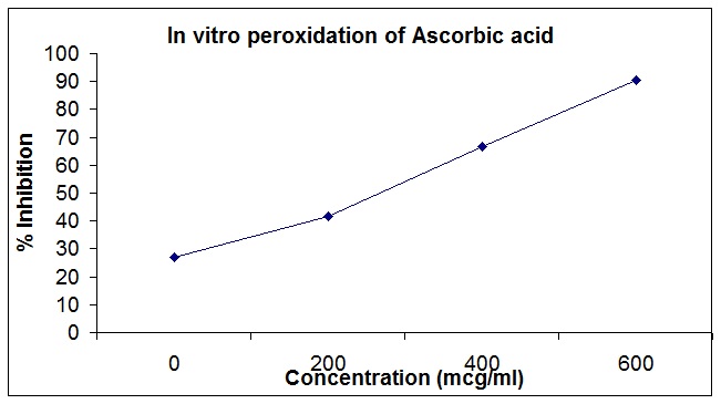 Table. 2. Shows the dose response results of nitric oxide scavenging and super oxide anion scavenging of the ethanol extracts of leaves of Alangium salvifolium. The extract reduced the generation of nitric oxide radical from sodium nitroprusside solution. This showed marked nitric oxide scavenging of the extract (90.63%). Also the extract showed significant superoxide scavenging activity (61.63%)