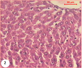 Fig. 2: Micrograph of the liver of rat traded with cold extract shows the normal structure of the hepatic lobule, (H & E X 150). |