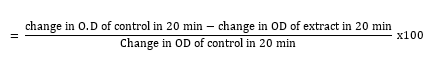 Different concentrations of PTWE were prepared by dilution with Tris HCl (50 mM, pH 7.5) and their 10 µl was mixed with 25 µl of Tris-HCl (50 mM, pH 7.5) and 15 µl intestine homogenate in the 96 well plate. The above mixtures were pre-incubated for 10 min at room temperature to enhance the binding capacity of the inhibitor and then 50 µl of 0.2 mM substrate (Gly-pro-p-nitroanilide) was added to each well and absorbance was taken at 405 nm, immediately and after 20 min. All reactions were performed in triplicate. Percent inhibition was calculated by using the formula given below: