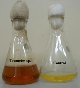 Trametes sp. used in this study was isolated from Bodhan Forest Nizamabad District, Telangana, India. It was grown and maintained at 35 oC±2 oC on Malt Extract Agar medium (MEA: Malt extract-15 gm, NH4Cl 1 gm, K2HPO4-1 gm, Citric acid 15N per 1000 ml of distilled water).