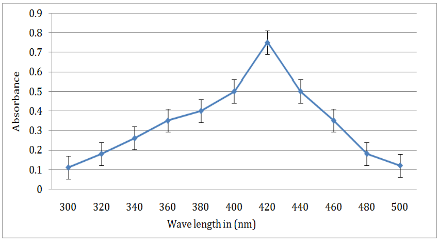 UV-Vis spectral analysis was done by using (ELICO SL-159 Spectrophotometer) in the range 350-470 nm. The reduction of pure silver ions was monitored by measuring the UV-Vis spectrum of the reaction medium at 48 h of incubation.