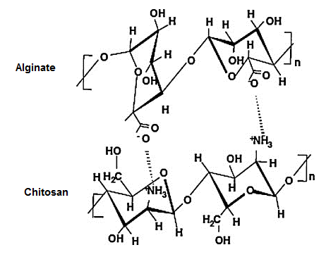 Fig. 1: Schematic representation of alginate and chitosan polyelectrolytecomplex