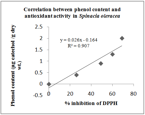 Free radicals are molecules containing unpaired electrons and are highly reactive. They are capable of attacking the healthy cells of the body, causing them to lose their structure and function. Cell damage caused by free radicals appears to be a major contributor to ageing and degenerative diseases such as cancer, cardiovascular disease, cataracts, immune system decline, liver diseases, diabetes mellitus, inflammation, renal failure, brain dysfunction and stress among others [1, 2]. Antioxidants are molecules that can neutralize free radicals by accepting or donating an electron to eliminate the unpaired condition. They scavenge free radicals and stop the propagation of free radical chain reactions [3]. The most significant chain breaking antioxidants are vitamin C and E, carotenoids and polyphenols [4-6]. Plants like Salvia viridis, Dracocephalum moldavica L, Centella asiatica, Nyctanthes arbortritis, Ipomoea reptans [7, 8] Bacopa monnieri [9] different species of Ocimum [10] showed strong antioxidant capacity. Pourmord et al. [11] reported that the extract of Mellilotus officinalis showed radical scavenging effect about four times greater than synthetic antioxidant butylated hydroxy toluene (BHT). Fruits [12] and vegetables [13] contain high amount of antioxidant compounds. Among vegetables, leafy vegetables are cheaper and widely available and are therefore consumed in quite higher amount, both in raw and cooked form by all sections of the population. Although antioxidants play neuroprotective and neuro regenerative roles [14] but excess antioxidants added to food might produce toxicity or mutagenicity [15]. Therefore, development and utilization of antioxidants, in the specific quantity, of natural origin is desired. Thus, interest in research of natural antioxidant, especially of plant origin, has greatly increased in recent years.