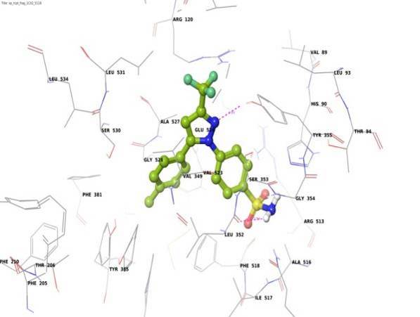 Fig. 1: Docking pose of celecoxib in active site of COX-2 enzyme