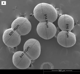 Enteric coated pellets were placed onto a double-sided carbon tape mounted on studs and sputter-coated (JFC-1100, Jeol, Tokyo, Japan) with gold. Photomicrographs of gold coated enteric coated pellets were obtained using a scanning electron microscope (SEM; Phenom, Netherlands).