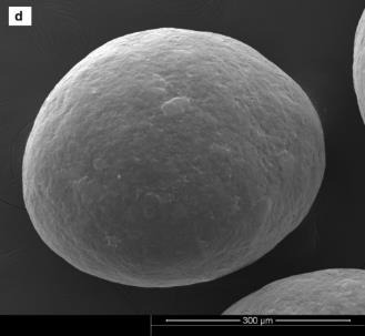 Fig. 3: SEM images of enteric coated pellets of-a) F13, b) F14, c) F17 and d) F19