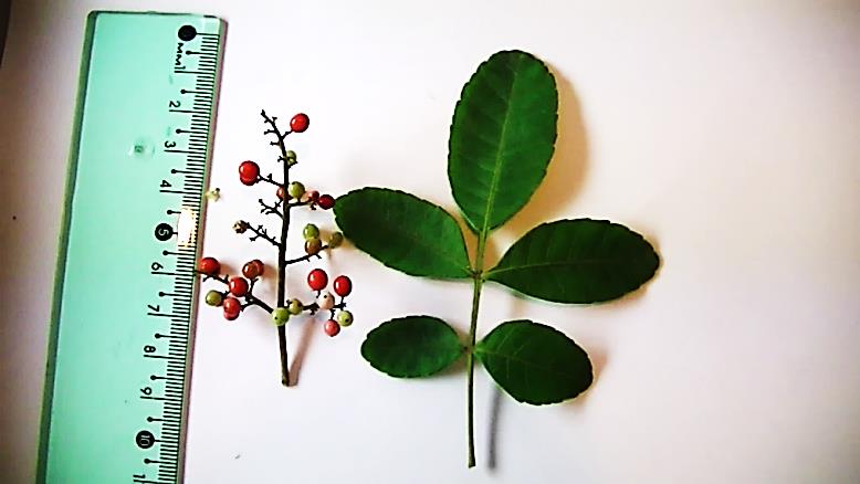 Fig. 1: The fruits, leaves and flower of the S. terebinthifolius Raddi