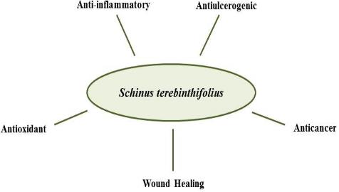 According [40], the S. terebinthifolius species is used in skin and mucosal injury and ulcer treatment. The decoction of the S. terebinthifolius barks was tested in rats, orally and intraperitoneally, with the anti-ulcerogenic effect started at a dose of 50 mg/kg i. p. where the animals treated with the extract at high doses did not develop gastric injuries [41]. The pH increase of the gastric fluid and the reduction of the gastric bleeding have also been observed [41, 42].