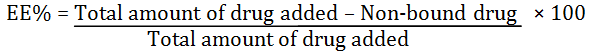 The entrapment efficiency of the drug-loaded nanoparticles was carried out by centrifuging specified amount of nanosuspension at 13000 xg and the supernatant was assayed for free drug concentration by spectrophotometric method [18]. Entrapment efficiency was calculated as follows: