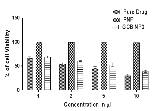 Fig. 9: Percentage of cell viability of pure drug, PNP and GCBNP 3
